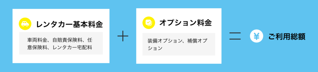 レンタカー基本料金と、オプション料金の合算がご利用総額となります。